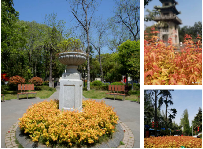 傳統(tǒng)色塊,無(wú)非綠,紅,黃三種顏色,“金禧”從萌芽到葉片成熟綻放,會(huì)經(jīng)歷多個(gè)變色階段,所以色塊隨著新葉的生長(zhǎng),會(huì)呈現(xiàn)多種色彩效果,并且層次遞進(jìn)是其他任何色塊苗木無(wú)法比擬的。